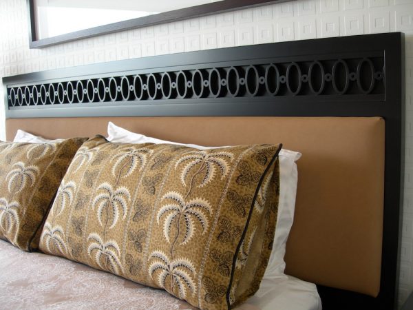 The smooth wooden circular handcrafted detailing on the front of the Contessa bedhead invites you to touch the sculptural structure. The fine circular sculptural detailing becomes more apparent and gives a pleasant shape and style. This designer furniture bedhead is perfect for city apartments and smaller spaces as its sizing and design are made for a city chic style.