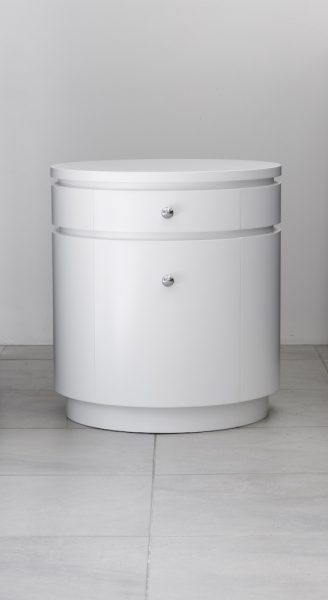 The Blanche Ronde Design is based on a White Drum inspiration creating a beautiful Round Bedside Table. With a Cupboard Door and Drawers with Silver Detailing for practical storage, the round curvings of the design create a stunning feature piece for your bedroom. The subtle shadow lines create a stronger sense of elegance and sophistication that make the piece more contemporary. Beautiful as a bedside table stand or for extra storage space in your office or personal space, the Blance Ronde is a timeless piece that can be fully enjoyed. Custom and tailoring available in detailing, sizing, timbers and other materials for a unique look suited to your individual style and interior design preferences.